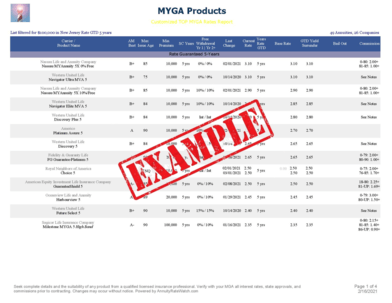 Every Report Includes ... Full Carrier Name, Max Issue Age, Minimum Premium, Free Withdrawal Info, Commissions